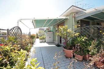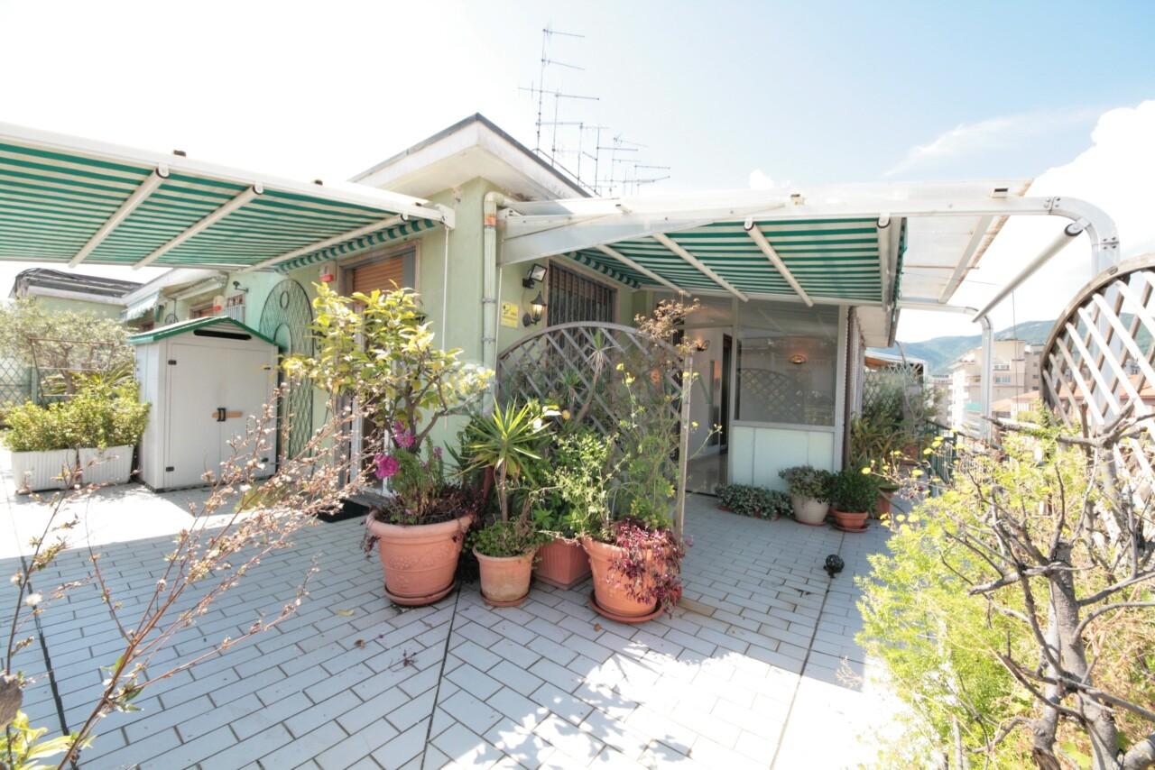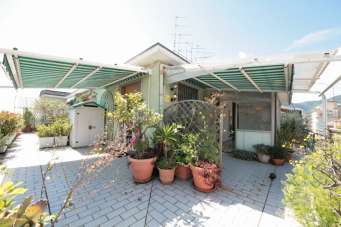 VIA VENETO - AD.ZE OSPEDALE, in zona servita e ben collegata, in stabile anni ´60 con ascensore proponiamo all´ultimo piano luminoso attico con esposizione angolare e terrazza di 100mq con vista mare che circonda l´intero appartamento. L´immobile, in ottime condizioni, è attualmente suddiviso in: ampio ingresso su zona giorno angolare, cucina abitabile con comodo accesso a veranda pranzabile, tre camere, doppi servizi entrambi finestrati di cui uno con balcone, ampio ripostiglio/lavanderia. I soffitti sono alti, la porta blindata, gli infissi doppi vetro in alluminio, avvolgibili elettrici, aria condizionata, impianto di allarme, tende da sole. Riscaldamento centralizzato con termovalvole.