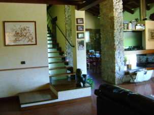 Ampio podere con attività di azienda agricola immerso in oltre 3 ettari di terreno con all´interno due ville di complessivi mq. 418 + fondo commerciale + cantina e laboratorio. Al piano terra della villetta più piccola : ingresso in disimpegno, bagno, soggiorno/pranzo, cucina, al piano primo : ampio disimpegno, due camere, 2 bagni, ampia terrazza. La villa grande: ingresso da pergolato in soggiorno/pranzo, cucina, 4 camere, disimpegno, tre bagni, corte, al piano primo: soggiorno, camera, bagno, soffitta. Taverna attrezzata con forno e camino, cucina economica, bagno. Ampie cantine. Posti auto coperti per 7 auto. Terreno in piano coltivato.