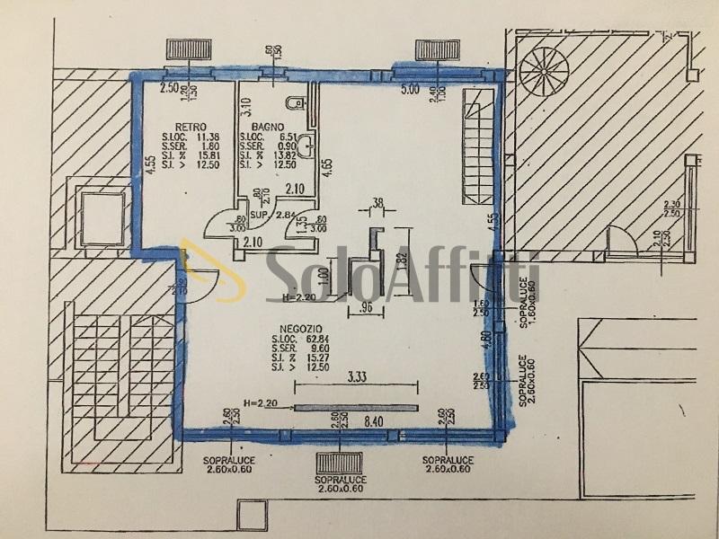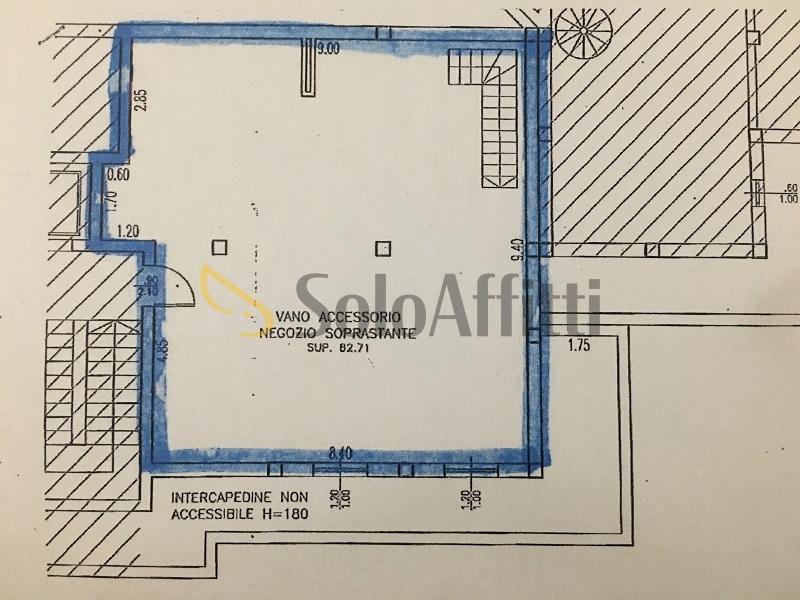 L´ immobile è composto da: ingresso su ampio vano commerciale di 80mq. un secondo vano di retro da utilizzare come ufficio e bagno con doccia. Dal vano principale si ha anche accesso ad un seminterrato con ampio vano da utilizzare come magazzino di ca. 80mq.