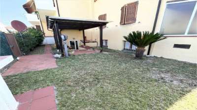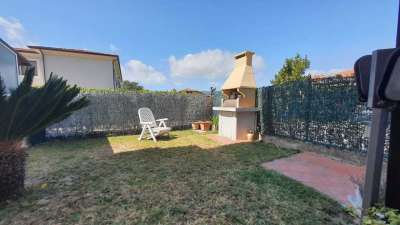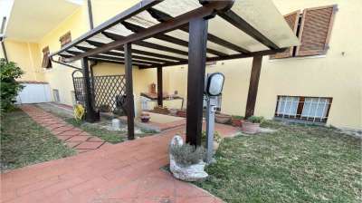 appartamento con ingresso indipendente cosi composto: ingresso in sala con camino, angolo cottura, 3 camere da letto, doppi servizi, giardino privato attrezzato con barbecue e posto auto condominiale. Termoautonomo.