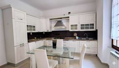 Ingresso in disimpegno, cucina abitabile, salone di generosa metratura, tre camere da letto e doppi servizi (uno con doccia, l´altro con vasca da bagno e doccia).