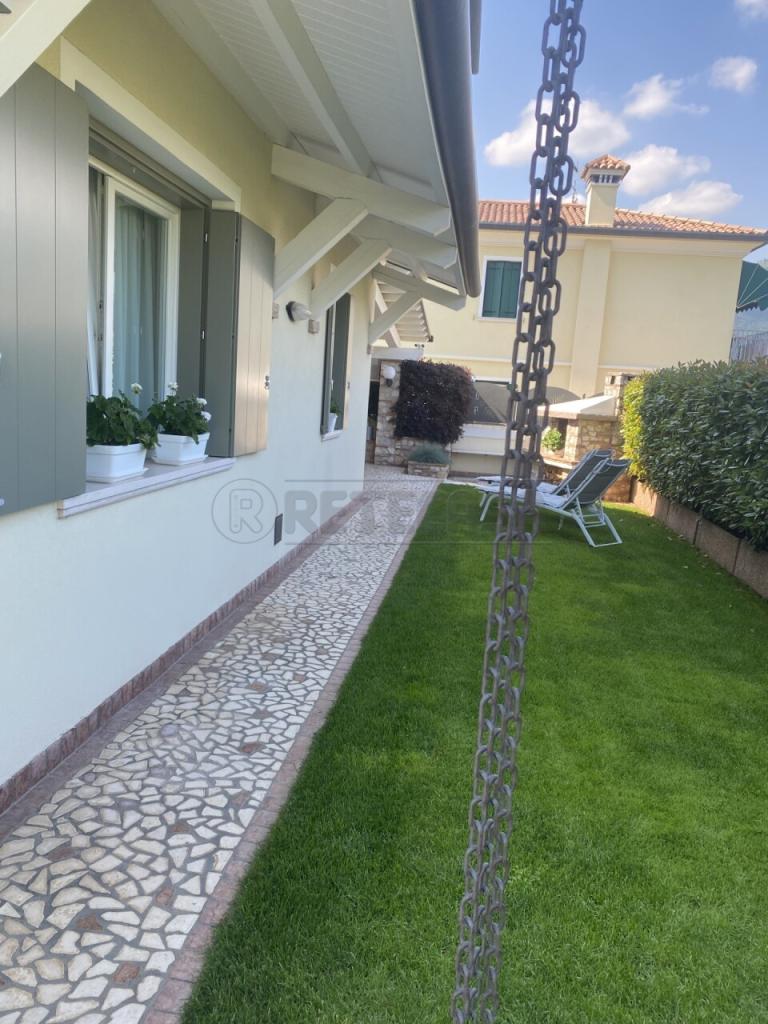 ROMANO D´EZZELINO- S. GIACOMO: Nella ricercata zona di S. Giacomo, su strada tranquilla senza sbocco veicolare e ben abitata, ampia porzione di testa di trifamiliare. L´immobile si sviluppa su due piani con entrata su splendido salotto con caminetto, cucina separata arredata in muratura, ripostiglio, antibagno e bagno, al piano primo camera matrimoniale con bagno e terrazzo, altre due camere con ulteriore bagno. Tutto l´immobile è dotato di aria condizionata in ogni stanza,di impianto d´allarme e fotovoltaico.. Nell´interrato, completamente finestrato, con altezza di m. 3, taverna con caminetto, bagno, lavanderia, due stanze per un totale di circa 80 mq. da adibire a palestra o a qualsiasi altro utilizzo, garage per quattro auto con basculante elettrico. Curatissimo giardino su due lati e porticato attrezzato con caminetto per cene all´aperto. Ottima soluzione sia dal punto di vista della posizione che offre assoluta privacy, che come manutenzione dell´immobile, introvabile negli spazi. Cl. E kWh mq./anno 175,81. € 450.000.