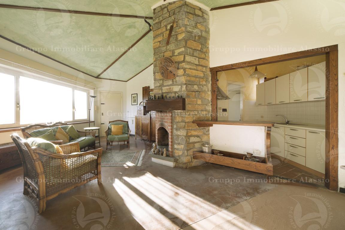 La proprietà si compone di un corpo centrale progettato negli anni ´60 dall´architetto Antonio Opassi; accedendo dall´ingresso al salone, la vista si proietta sul grande camino a tutta altezza creando un interessante suddivisione geometrica nell´estetica complessiva della zona giorno; la grande vetrata incornicia l´affascinante vista del golfo di Alassio e dietro al grande camino trova spazio la zona cucina e la zona pranzo dalla quale si accede ad un rilassante terrazzo vista mare. Ben separata la zona notte che attraverso il corridoio conduce alle tre camere da letto, alla stanza armadi, al grande bagno e alla lavanderia; a completamento del corpo principale troviamo ancora un´area dedicata al barbecue e diversi giardini, dotati di impianto di irrigazione e decorati con vari alberi da frutta.