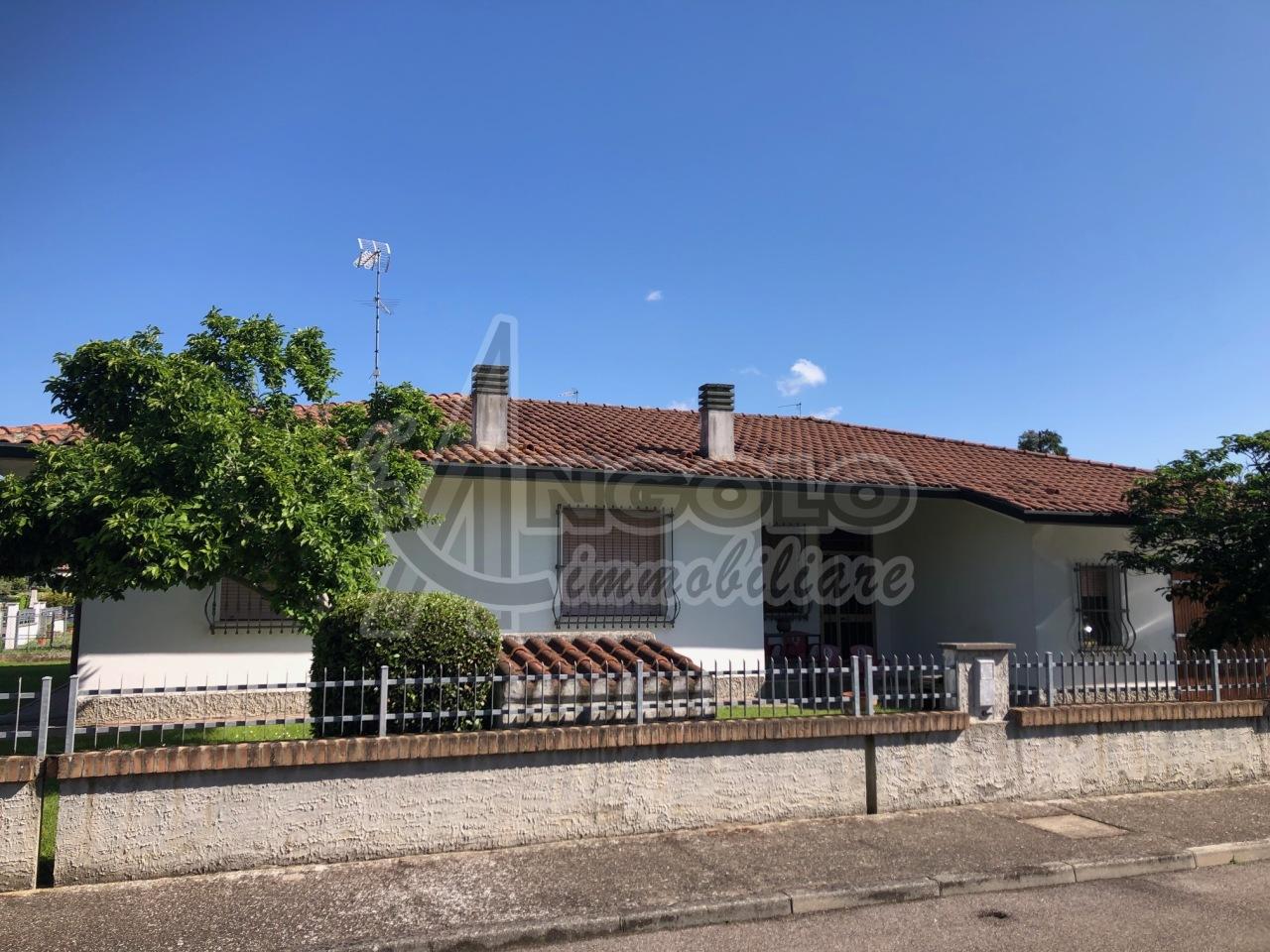 Nel centro del paese in una signorile area residenziale, VILLA singola interamente al piano terra costruita negli anni 90 con spazi interni comodi e ben distribuiti, con ampio scoperto esterno (il lotto sulla quale è costruita è di 600 mq, ad angolo in strada a fondo chiuso e vicino al parco )E´ così disposta: portico, (parte ´´padronale´´)Ingresso sul soggiorno, cucina abitabile, tre camere letto matrimoniali, bagno,(parte secondaria) cantina-taverna, con accesso diretto a giardino con portico disimpegno. Garage di oltre 20 mq. (Possibilità suddivisione due unità abitative per soluzione GENITORI+FIGLI) Classe Energetica F 352.62 kwh/mq