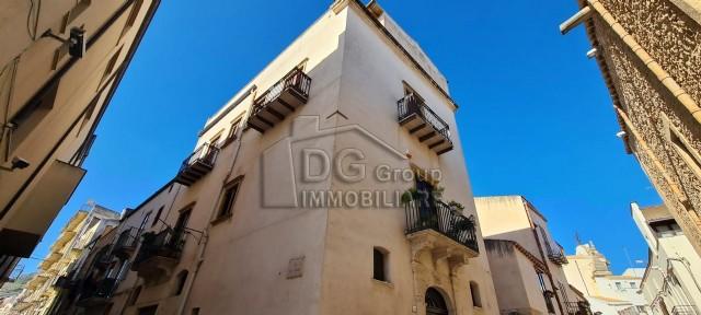 Proponiamo un appartamento signorile di 145 mq circa posto al secondo di un fabbricato bifamiliare in centro storico di Alcamo. \n\nL´appartamento è composto da un ampio salone con un bellissimo soffitto decorato con cura, gode di doppia esposizione ad angolo, ed è così composto ; una camera matrimoniale, bagno con vasca e una seconda camera e un piccolo ufficio. Tutte le stanze risultano molto luminose grazie alla presenza di finestre e/o balconi.\n\nDal salone attraverso una scala interna si accede al piano superiore con cucina abitabile, ulteriore bagno con doccia e un grande terrazzo con vista mare, vista montagna e vista panoramica.\n\nL´immobile è fornoto di riscaldamento autonomo abitabile fin da subito.