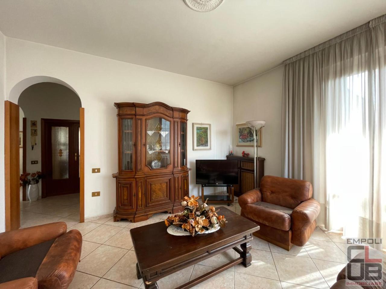 Rif.Ag. M/0524 - EMPOLI RIF. M/0524 PIAZZA TOSCANINI PRESSI, ALL INTERNO DI SIGNORILE PALAZZO DI FINE ANNI 70 DAI PECULIARI TRATTI ARCHITETTONICI MODERNISTI, LUMINOSO APPARTAMENTO DI 120 MQ LORDI CON GRADEVOLI AFFACCI SU 4 LATI, CORREDATO DI DUE TERRAZZI, GARAGE E GIARDINO CONDOMINIALE ADIBITO A PARCHEGGIO COMUNE. Limmobile, posto al secondo piano e servito da ascensore, è suddiviso in 5 ampi vani così composti: ingresso, ampio soggiorno con terrazza, disimpegno, cucina abitabile con balcone in parte adibito a zona lavanderia; corridoio di accesso alla zona notte, dove sono presenti tre camere da letto matrimoniali, il servizio igienico con finestra, ed il ripostiglio. Le camere hanno un rivestimento in parquet di listelli in vero legno di tipo industriale che se levigato, ri sulta attuale e davvero piacevole. Al piano terra, un garage di circa 20 mq completa le pertinenze dell appartamento; dalla zona dei garages/parcheggio è possibile accedere comodamente all ascensore senza barriere architettoniche. Limmobile ha subito una parziale ristrutturazione ma dato il contesto cittadino e la tipologia di palazzo si presta a divenire, a seguito di riammodernamento, una dimora di grande fascino. La zona è strategica, a pochi minuti dall uscita empoli est della FI PI LI ma a pochi passi dai principali servizi cittadini e dal parco di Piazza toscanini. Classe energetica: G - ipe 160,00 - Rif. M/0524 - euro ,00 - SC