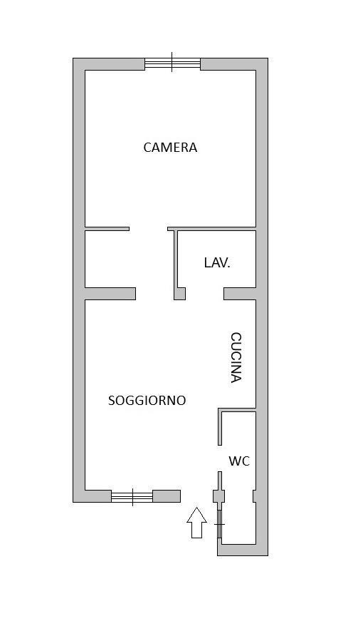 L´appartamento è composto da ingresso, soggiorno con cucina a vista, ampia camera matrimoniale, bagno finestrato a zona ripostiglio/dispensa. Doppia esposizione.