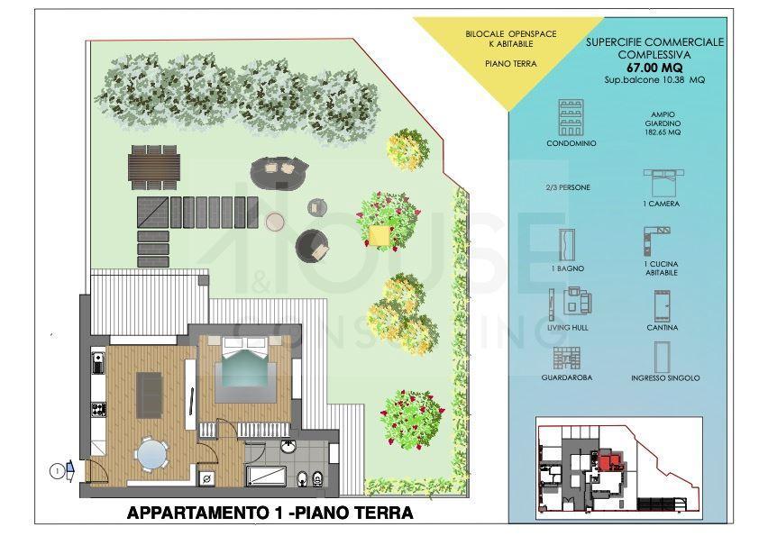 L’appartamento n. 1, situato al piano terra, è composto da: