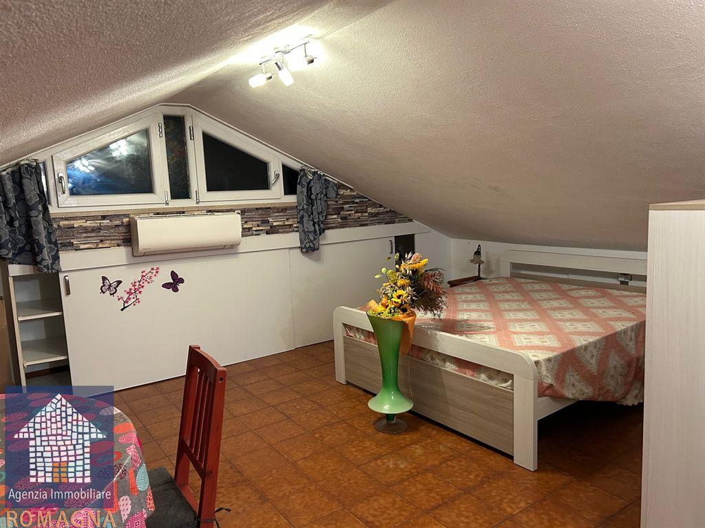 LIDO ADRIANO - In zona residenziale comoda a tutti i servizi proponiamo mansarda di circa 50 mq. Unico ambiente con ingresso, zona soggiorno, angolo cottura, ambiente pranzo e letto matrimoniale. Bagno con doccia. Infissi in pvc con doppio vetro. Stufa a pellet. Climatizzatore e posto auto. Basse spese condominiale. Classe energetica E