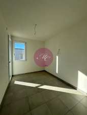 - Pavimenti interni in tonalità di grigio, porte interne bianche con maniglie cromo satinate.