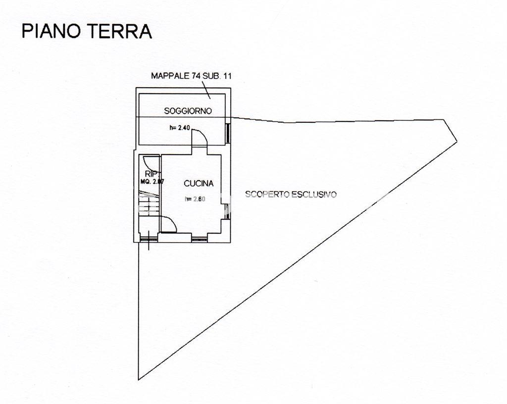 Al Piano Terra: l´ingresso conduce a una luminosa cucina con camino, in una stanza separata il soggiorno. Un utile ripostiglio nel sottoscala ora adibito a cucinotto offre spazio aggiuntivo per riporre oggetti e mantenere l´ambiente ordinato.