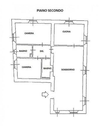 L´immobile è composto da: ingresso, soggiorno doppio, cucina abitabile, 2 camere da letto, 2 bagni di cui uno finestrato e ripostiglio. Completa la proprietà una cantina di pertinenza.