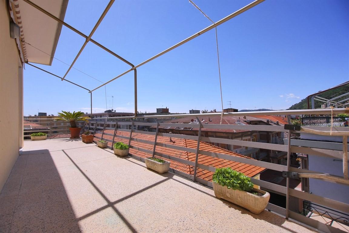 Alassio, a 150 metri dal mare, proponiamo in vendita un attico al quinto ed ultimo piano con ascensore e così composto: ingresso disimpegno, cucina abitabile, soggiorno, due camere da letto, bagnetto di servizio e bagno con vasca, il tutto é da ristrutturare. L´appartamento ha un ampio terrazzo su tutti e i tre lati e volendo, essendo di proprietà esclusiva, si può accedere sul superiore terrazzo, ampio come tutto l´appartamento sottostante, per poter godere della totale vista collina e mare, chiaramente bisogna istallare una scala per accedervi.