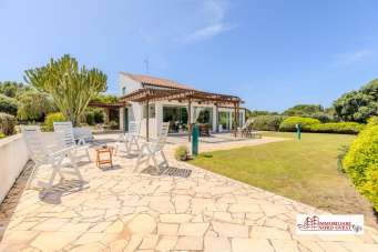 VILLA SINGOLA CON AMPIO PARCO, CHE GARANTISCE ASSOLUTA TRANQUILLITA´ E PRIVACY. PISCINA PRIVATA, MARE RAGGIUNGIBILE CON UNA PASSEGGIATA DI UN CHILOMETRO, COSI´ COMPOSTA:\nAl piano terra troviamo un salotto con cucina a vista e un´ampia veranda, una camera matrimoniale e un bagno.\nAllo stesso livello, una dependence collegata direttamente alla villa, con accesso indipendente, così composta:\n- soggiono con angolo cottura;\n- una camera;\n- un bagno.\nAl piano superiore, due camere da letto e un bagno.\nIl giardino pianeggiante che contorna la villa è perfettamente mantenuto e una splendida piscina offre tutti i confort.\nIl pozzo privato, rarità per immobili dell´isola, con trattamento d´acqua a doppia osmosi, garantisce abbondante approvvigionamento idrico, sia per l´uso domestico che per la piscina e il giardino.\nQuesta villa, è ad 1km dalla spiaggia della Tonnara e a 5/10 minuti massimo con l´auto dalla maggior parte delle spiagge dell´isola. A 5 minuti a piedi dalla villa troviamo la fermata di un comodo servizio bus per il paese. E´ la soluzione perfetta per chi cerca un luogo con moltissima privacy, a poca distanza dalle favolose spiagge della Sardegna, e comodamente raggiungibile dall´Areoporto Internazionale di Cagliari Elmas. \n - Maggiori Dettagli: Aria condizionata, Piscina