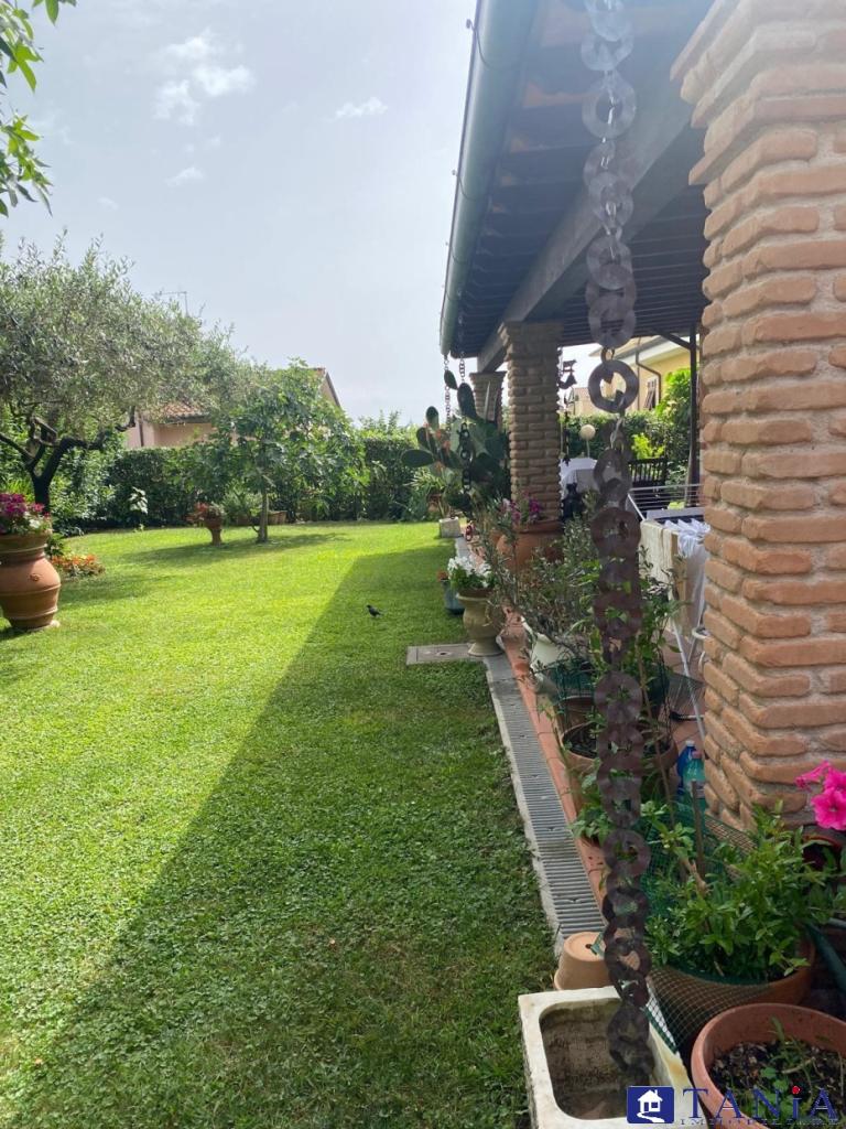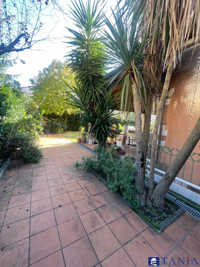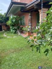 FOSSONE PORZIONE DI BIFAMILIARE CON GIARDINO RIF. 4433\nPorzione di bifamiliare di ampia metratura composta a piano terra da ampio portico, ingresso, salone, cucina, studio/camera, bagno; al piano primo 3 camere matrimoniali di cui una con bagno privato, bagno, 3 terrazze; al piano seminterrato ampia taverna con salone camino e forno, cucina, camera, bagno. Completa la proprietà la mansarda al grezzo, ricovero attrezzi, parzialmente arredato. Ottime rifiniture - Maggiori Dettagli: Camino, Cassaforte, Cucina Abitabile
