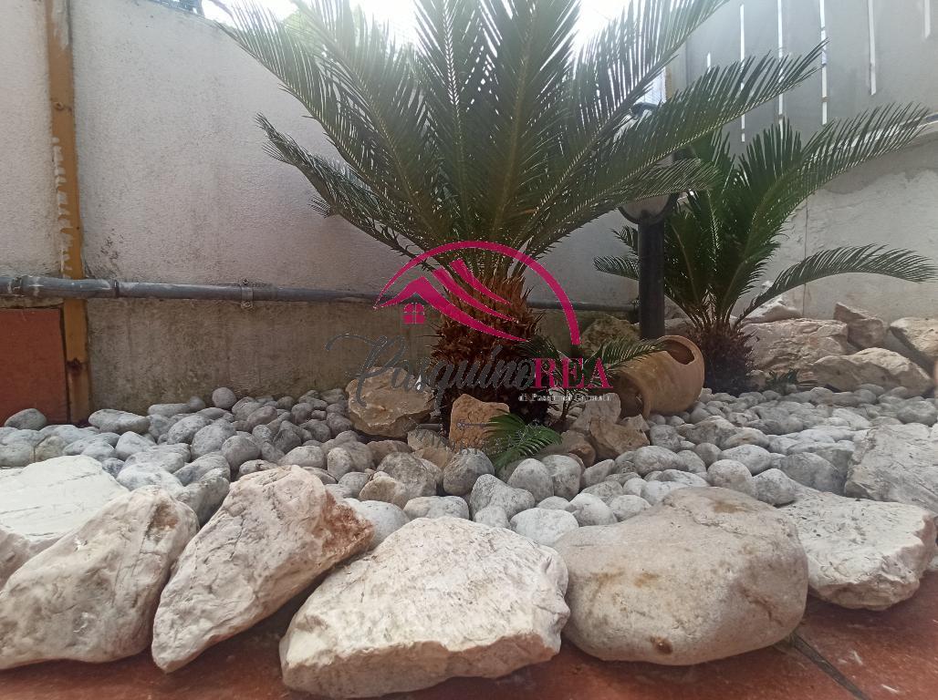 Ingresso su giardino di pertinenza ESCLUSIVA e posto auto con doccia esterna, al primo piano l´ingresso si apre su sala con angolo cottura, e balcone, camera da letto, due camerette e servizio.