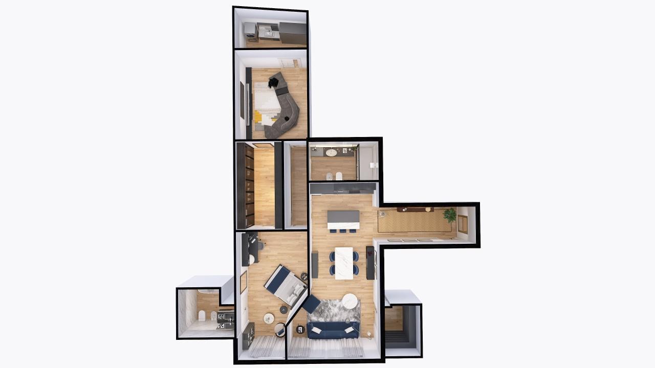 Le immagini pubblicate sono render fedeli alle finiture previste da capitolato e alle reali dimensioni degli spazi, così da offrire un’anteprima concreta delle potenzialità dell’appartamento.