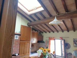 caratteristico e luminoso appartamento con travi a vista al piano secondo ed ultimo in piccola palazzina ristrutturata, composto da: cucina in muratura soggiorno con camino, camera matrimoniale, bagno finestrato, ripostiglio. Cantina di mq 18 al piano terra con bagno.