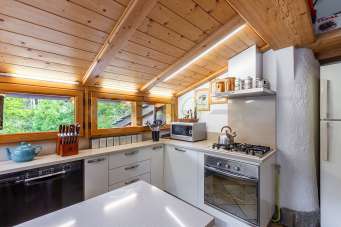 La villetta, in posizione tranquilla e riservata, con uno sfondo sulla catena del Monte Bianco si compone di: caldo e accogliente soggiorno con camino a legna e zona pranzo, cucina separata, completamente accessoriata, con accesso verso l´esterno, al portico e al giardino di proprietà, che circonda quasi interamente l´abitazione.
