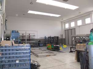 - Piano terra, porzione ad uso magazzino/produttivo estremamente luminoso con altezza di 6,85 m per complessi mq. 400 riscaldati e finestrature motorizzate, oltre a locali deposito,laboratori,doppi servizi con spoglitoi,archivi e locale macchine per ulteriori mq 160.con 2 ingressi carrai e uno pedonale