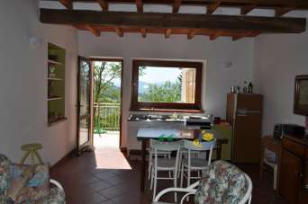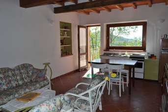 E´ composto da Piano Terra con zona giorno , angolo cottura, terrazzino con vista sulla vallata, camino e soffitta con travi a vista;