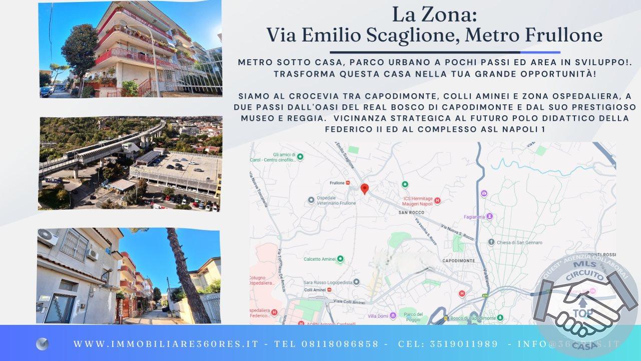 Open House esclusivo a Napoli - In Vendita Appartamento TRILOCALE IN PARCO CON POSTO AUTO ED A 3 MINUTI DALLA STAZIONE METRO FRULLONE ottimo per uso proprio ma anche come investimento intelligente e redditizio per adibirlo ad uso ricettivo o per locazione a Studenti | Visita solo su prenotazione: Sabato 06 Dicembre 2025, dalle 10:00 alle 11:00\n\nImmagina di svegliarti sapendo che la tua famiglia è al sicuro e che ogni necessità è a pochi minuti di distanza. Qui, nel Condominio Viale Azzurro , non acquisti solo 104 mq, ma una qualità della vita ed un investimento che valgono molto di più.\n\nQuesto versatile trilocale si trova in un ottimo Parco privato, ben curato e con un eccellente vicinato. Il tuo stress finisce appena entri nel cancello: hai un POSTO AUTO condominiale assegnato, un vero sollievo quotidiano.\n\nLa Tua Vita Semplificata (Comodità A Portata di Mano):\n and #128647; STOP STRESS: La METRO Linea 1 (Stazione Frullone) è a soli 3 minuti a piedi. Dimentica il traffico per andare in centro.\n\n and #128739; and #65039; PARTENZE VELOCI: Lo svincolo dell´Asse Mediano è a soli 4 minuti in auto. Perfetto per chi lavora fuori città ma anche per spostamenti personali e gite fuori porta.\n\n and #127795; RESPIRA CAPODIMONTE: Il maestoso Real Bosco di Capodimonte è a 1,5 km (circa 5 minuti in auto). Il tuo parco giochi naturale per i bambini e per il tuo jogging.\n\n and #127973; TRANQUILLITÀ SANITARIA e POLO LAVORATIVO: la nuova ASL Napoli 1 Centro è vicinissima (circa 5 minuti in auto).\n\nLa posizione è un perfetto baricentro tra Capodimonte, Colli Aminei e la Zona Ospedaliera, garantendo vivibilità ed accessibilità a scuole, servizi e ai poli di sviluppo ed aggregazione.\n\nIl Prezzo dell´Opportunità è la configurazione stessa di questo appartamento che se da un lato è senza ascensore dall´altro vuol dire risparmio sulle spese condominiali, se da un lato è con sole finestre, dall´altro vuol dire poter sfruttare al massimo tutti i mq utili interni ed il tutto con un notevole vantaggio di prezzo dovuto a tali caratteristiche così da poter sfruttare al meglio l´opportunità di ristrutturarlo secondo le proprie esigenze e personalizzando ogni dettaglio!\n\nSiete proprio sicuri di volervi lasciar sfuggire un´ occasione UNICA per avere un immobile di queste dimensioni in parco con posto auto ad un prezzo accessibile?\n\nATTEZIONE: Visita l´immobile solo su Prenotazione:\nPartecipa al nostro evento esclusivo Open House sabato 06 Dicembre 2025, dalle 10:00 alle 11:00. L´accesso è riservato e su prenotazione. \nRegistrati subito per non perdere l´occasione di visitare questa splendida soluzione abitativa.\n\nPosti limitati. Prenota ora la tua visita con 360RES Immobiliare.\n\nContattaci subito per ricevere il link di registrazione all´Open House e ottenere in anteprima la scheda completa con foto, planimetria e dettagli!\nChi partecipa all´Open House riceverà in omaggio un´esclusiva guida su Come Vendere Casa a Napoli in sole 360 Ore al Suo Massimo Valore!\n\nAPE: Classe G, IPE 175,00\n\nVuoi Candidare anche la Tua Casa da vendere al sistema 360RES e scoprire se può superare la selezione per essere la prossima Casa più appetibile di Napoli relativamente alla sua Zona e Tipologia?\n\nPuoi semplicemente contattarci da qui oppure iniziare compilando l´ utile e dettagliato form su https://bit.ly/valutazione_on_Line\n\nVendi | Compra | Progetta | Ristruttura | Abita con\n\n360RES - il punto di riferimento per Ogni esigenza immobiliare\nTel: 08118086858\nCel: 3519011989\nmail: info@360res.it\nwww.360res.it\nwww.immobiliare360res.it\n\nL´appartamento sarà visibile esclusivamente con la Formula #openhouse #360RES fissato per il Giorno Sabato 06/012/2025 dalle h: 10:00 alle 11:00\nmaggiori dettagli ed informazioni attraverso il nostro canale Youtube @360res e le nostre pagine Social che vi invitiamo a seguire per restare aggiornati cercandoci con l´Hashtag #360RES\n\n[Importante]: Essendo questa l´Unica Data in cui sarà possibile visionare l´immobile Vi suggeriamo di venire fin da subito accompagnati da tutte le persone che potranno supportarVi nell´eventuale decisione di acquisto, siano essi parenti, familiari, amici, tecnici o consulenti.\n\nLe informazioni riportate cosi come le immagini sono puramente indicative e non costituiscono elemento contrattuale - Maggiori Dettagli: Posto auto, Vista panoramica, Cancello elettrico