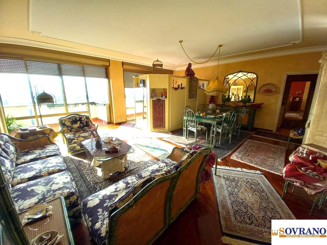 Zona: Via Autonomia Siciliana/Fiera/Marchese di Villabianca/Sampolo\n\nIn zona ricercata e signorile e precisamente in Via Autonomia Siciliana, in contesto tra i più noti e ricercati a Palermo per varie caratteristiche quali il suo essere pluriservito, grazie alla presenza di molteplici attività commerciali e servizi pubblici, siamo lieti di proporre un´esclusiva e prestigiosa opportunità di vendita, un attico posto al 13° piano di un signorile contesto condominiale. L´abitazione si estende su una superficie di ca. mq 220, le condizioni interne sono ottime e risulta così meglio descritta: doppio ingresso, salone triplo con balcone, cucina semi abitabile, 2 camere da letto con balcone (di cui una con bagno annesso), un bagno, lavanderia, 3 ripostigli. Completa la proprietà una veranda con tetti in legno con una soluzione open distribuita a studio, soggiorno e saloncino con camino.\nL´immobile è provvisto di riscaldamento autonomo, n° 4 condizionatori, caldaia nuova, pavimentazione in parquet, porte in legno massello artigianale, impianto idrico ed elettrico recentemente rifatti, ampie vetrate con vista panoramica mozzafiato.\n\nL´immobile è visionabile tutti i giorni previo appuntamento telefonico.\nPer maggiori informazioni contattare Agenzia Sovrano Immobiliare ai numeri Tel. / Cell. \nemail: info@sovranoimmobiliare.it\nHai bisogno di vendere e/o concedere in locazione il tuo immobile?\nRichiedi subito una consulenza GRATUITA immobiliare con il nostro esperto capace di valutare la tua casa e stimare il giusto prezzo di mercato. Contattaci Tel. / Cell. \n\n\n - Maggiori Dettagli: Climatizzato, Camino
