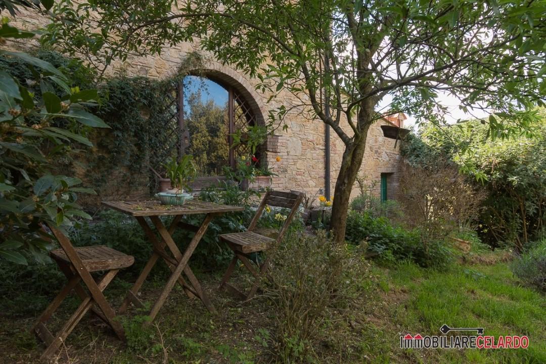 Vendesi Porzione di Casale toscano immerso nella campagna a pochi minuti da San Gimignano.\nLa porzione di casale, circa 270 mq , e´ stata ristrutturata con isolamento in sughero del tetto e delle pareti perimetrali. Al suo interno vi sono pavimenti in cotto invecchiato e grandi travi in legno, l´impianto di riscaldamento collegato al camino produce anche l´acqua calda avendo cosi´ un notevole risparmio energetico. La porzione di casolare è composta da una luminosa e grandissima zona giorno / cucina che da sul giardino, uno studio con ampie pareti vetrate, un bagno e un ampio disimpegno dal quale si accede al piano superiore dove troviamo due grandi camere matrimoniali con due bagni. Al primo piano si accede anche tramite le scale esterne in pietra e mattoni faccia a vista che danno su una terrazza. La terza camera con bagno ha un suo ingresso indipendente dal giardino. Inoltre vi e´ un capanno posto poco distante dal casolare principale da ristrutturare. Il terreno e´ composto da uliveto / seminativo e bosco di circa 21 ettari. L´acqua potabile è garantita da due sorgenti naturali oltre ad un pozzo artesiano. Le caratteristiche dell´immobile e la posizione lo rendono unico nel suo genere per i veri amanti della natura.\nLa nostra agenzia è strutturata per fornirvi, gratuitamente, assistenza per la richiesta di mutuo, notaio, tecnici e quanto necessario tramite gli istituti bancari ed i professionisti che collaborano con noi.\nwww.immobiliarecelardo.it