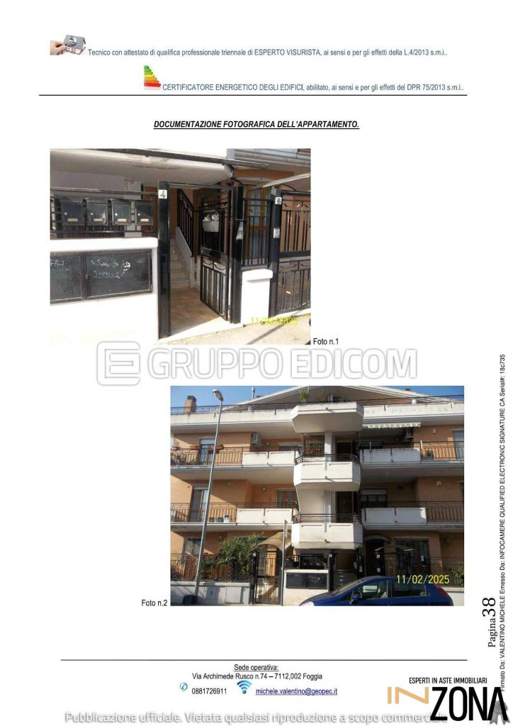 ASTA --- prezzo and euro;93.000,00 --- risparmio and euro;31.000\nBene n. 1\nAppartamento primo piano, scala B, interno 4, della superficie commerciale di mq 112, composto da ingresso/soggiorno, cucina, due camere letto, wc, ripostiglio, corridoio e due balconi. Presenti infiltrazioni. Classe energetica E.\nBene n. 2\nBox auto piano seminterrato di mq 15 commerciali, il qusul lato sinistro. Manca ascensore interno.\n\nData vendita\n22/01/2026 - 16:30\n\nPrezzo base\n and euro; 124.000,00\nOfferta minima\n and euro; 93.000,00\n\nTi piacerebbe comprare una casa all´asta ma non sai come fare perché non sei un esperto?\nContattaci per avere maggiori informazioni su questo immobile e su come poterlo acquistare in totale sicurezza.\nINZONA offre un servizio di ASSISTENZA TECNICO - LEGALE per l´acquisto di immobili in asta attraverso queste attività:\nPRIMA CONSULENZA: Appuntamento presso la nostra sede di Foggia, presso il Centro direzionale E9 in Via Donato De Leonardis, 2 - 71121 Foggia (FG), per offrire chiarimenti sulle aste ed ascoltare le tue esigenze immobiliari.\n- Mediazione creditizia\n- studio fattibilità per la partecipazione in asta con mutuo fino al 100%\n- Studio della perizia e della documentazione dell´immobile\n- Accertamenti catastali per eventuali abusi edilizi\n- Accompagnamento Visita Immobile\n- Disbrigo pratiche per la partecipazione all´asta (anche solo compilazione della domanda)\n- Rappresentanza Legale il giorno della vendita\n- Rilascio del decreto di trasferimento in tempi brevi\n- Assistenza per il Saldo Prezzo\n- Compilazione F24 per Tasse\n- Disbrigo Pratiche per Eventuale Sanatoria\n- Assistenza alla Consegna Immobile\n\nContattaci per avere maggiori informazioni sull´immobile e su come partecipare all´asta.\n\n\n