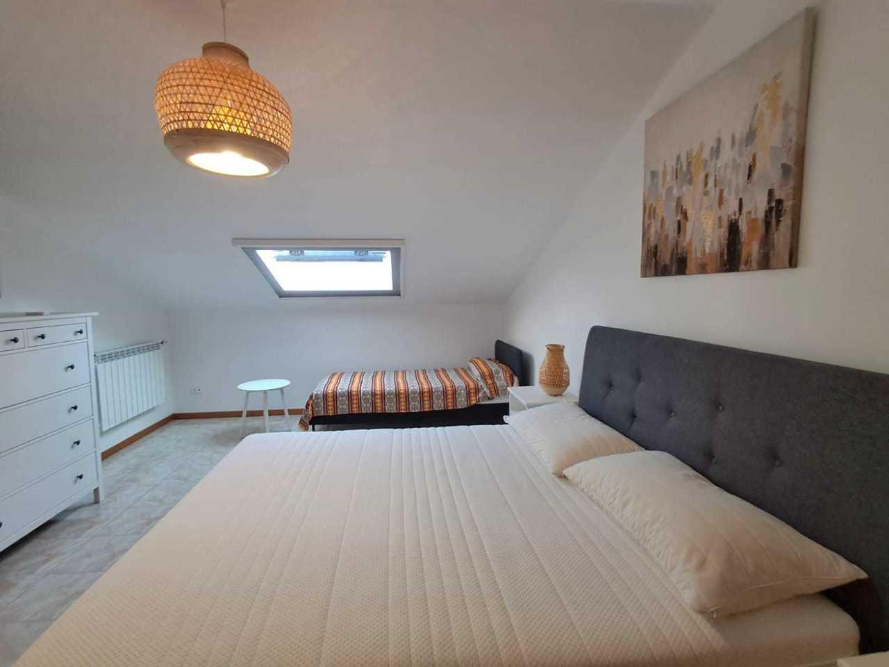 STUDIOAFFITTI LECLERC PROPONE: in contesto signorile e tranquillo, al piano primo di bifamiliare, appartamento mansardato ampio e luminoso composto da: ingresso su cucina abitabile, soggiorno con divano letto e aria condizionata, ampia camera matrimoniale e bagno con doccia e lavatrice. Piccolo ripostiglio.Completamente arredato nuovo, termoautonomo. Giardino e posto auto interno alla proprietà.