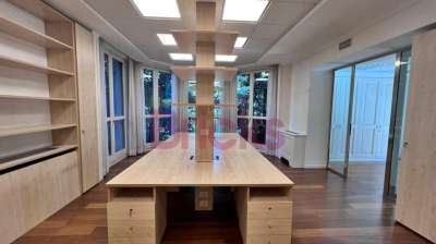Gli uffici non sono collegati internamente. Pavimentazione in marmo e parquet, riscaldamento e aria condizionata canalizzati (incluso nell´importo delle spese condominiali), silenzioso, affaccio su un gradevole giardino condominiale, con presenza del custode.