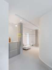 La soluzione è composta da doppio ingresso: uno riservato ai professionisti e uno per la clientela, per garantire privacy e gestione fluida degli accessi.