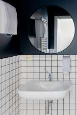 Ingresso con sala d’attesa arredata, bagno di servizio in condivisione, spogliatoio con armadietti personali riservati ai professionisti, area break attrezzata con macchinetta del caffè, bollitore e dispenser d´acqua.