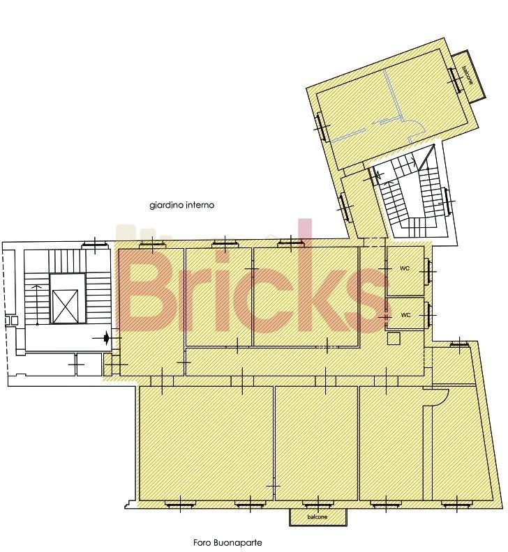 FORO BONAPARTE 12 - Un palazzo d´epoca affacciato su Foro Bonaparte e il Castello Sforzesco, il cui cortile interno ospita una costruzione dei primi anni ´60, al piano terzo si sviluppa un prestigioso ufficio di ampia metratura. Lo spazio si sviluppa in ampia reception, otto locali, un´ampia sala riunioni, oltre servizi ben separati, locale break, un raccolto terrazzo e balconata con affaccio interno. L´ufficio è cablato, il riscaldamento è centralizzato ed è condizionato autonomamente. Possibilità di box e posti auto all´interno del palazzo, impianto di videosorveglianza e servizio di portineria per l´intera giornata.