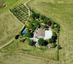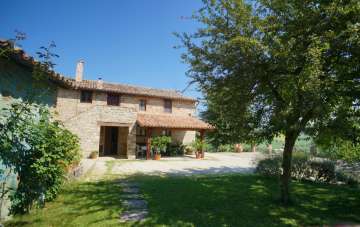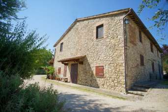 TODI – vicinanze – bellissimo casale in pietra con vista panoramica – composto da tre appartamenti completamente indipendenti: piano terra salone, cucina, due camere, bagno e portico; soggiorno camera e bagno; piano primo: grande salone/soggiorno, cucina, tre camere e due bagni; ripostigli e legnaia. Parzialmente arredato. Il tutto per circa 330 mq. Un annesso agricolo. Terreno circostante 5.000 mq con piscina.