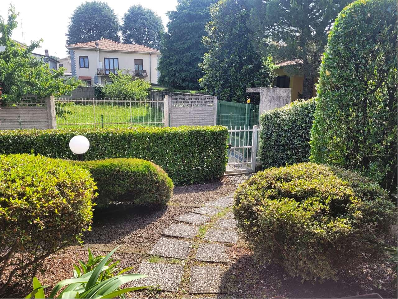 cod.V001601. Fagnano Olona (VA). In ottimo contesto residenziale ubicato nelle immediate vicinanze delle maggiori reti viabilistiche e a poca distanza dal centro, vendesi villetta a schiera semindipendente, composta al piano terreno, da ingresso sul soggiorno, cucina abitabile, disimpegno, due camere da letto, bagno con vasca, portico sulla zona giorno, balcone con uscita da una delle due camere. Scala interna collega il primo piano (agibile/non abitabile) formato da ampio locale pluriuso e bagno/lavanderia. Porzione cantinata, di generose dimensioni, è ubicata al piano interrato, formata da due locali con destinazione accessoria, lavanderia e box auto doppio (in lunghezza) dotato di porta sezionale. Completano la proprietà un giardino esclusivo sul davanti (circa mq.66) e una piccola porzione sul retro con uscita dal piano interrato. L´immobile, dotato di riscaldamento autonomo (NO condizionamento), impianto antifurto, serramenti nuovi e zanzariere, presenta buone finiture e un ottimo stato di conservazione. L´accesso carraio avviene attraverso corsello box auto comune con altre unità immobiliari.