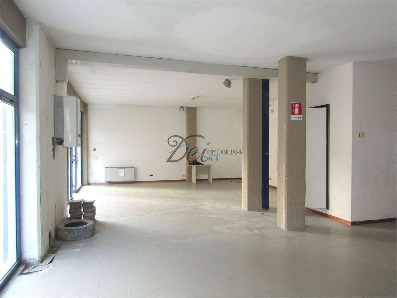 In zona di grande transito veicolare, fondo al piano terra a destinazione commerciale/direzionale, composto da unico grande vano di circa 98 mq, antibagno e bagno. A corredo tre posti auto di proprietà.