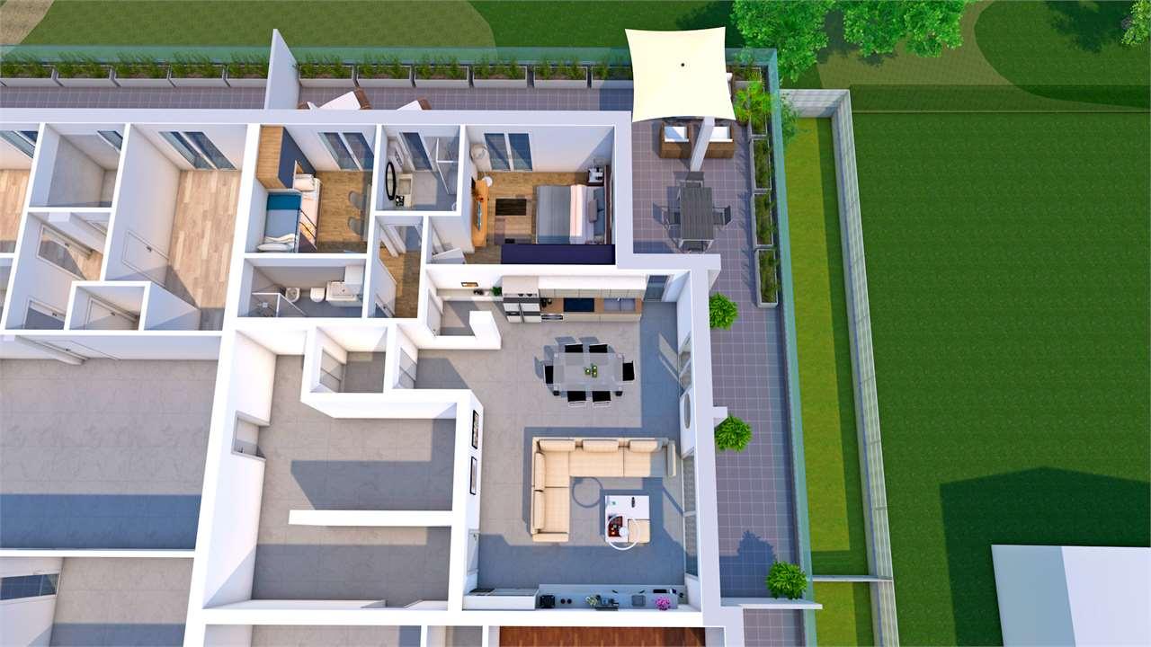 Nel dettaglio proponiamo 3 locali sito al piano terzo e ultimo composto da: ingresso, ampia zona living con cucina a vista, due camere da letto, doppi servizi, ampio terrazzo angolare e locale cantina.