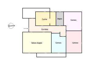 L´ingresso conduce a un corridoio da cui si accede alla cucina, organizzata in un pratico cucinotto comunicante con la zona pranzo, al salone doppio, alle tre camere da letto e al bagno. Due balconi, grazie alla doppia esposizione est-ovest, donano luce naturale durante tutta la giornata.