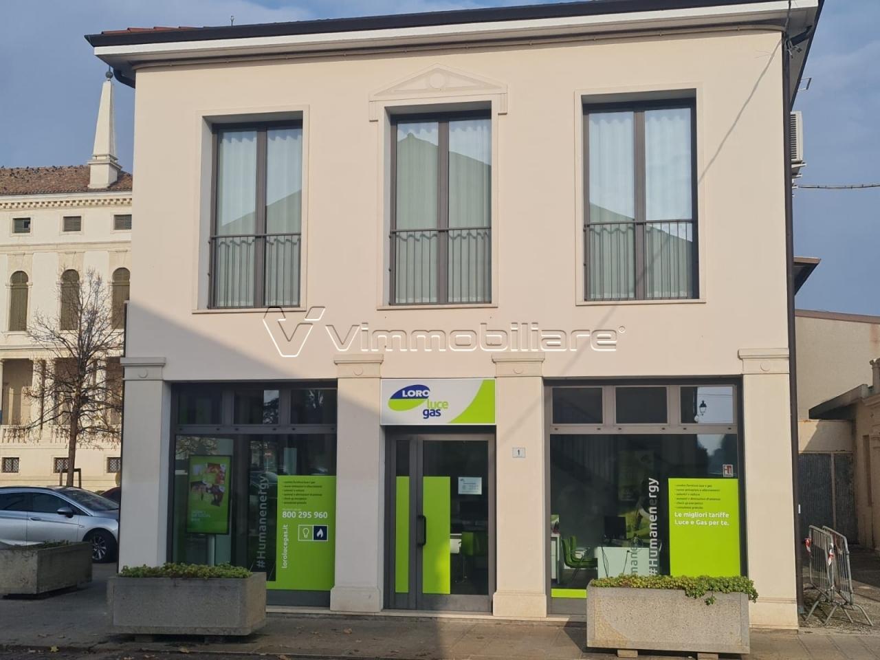 NOVENTA VICENTINA: zona centralissima negozio vetrinato ad angolo su due livelli di 108 mq comm. con due ingressi quattro grandi vetrine, servizio e ripostiglio al primo piano. Bellissima, strategica e unica posizione con vista sulla piazza e municipio. Classe B EP gl,ren 173,10 kWh/m³. Euro 240.000.