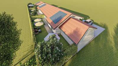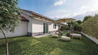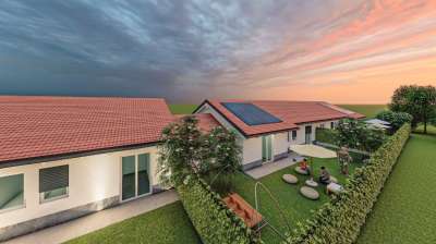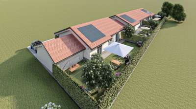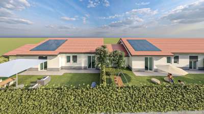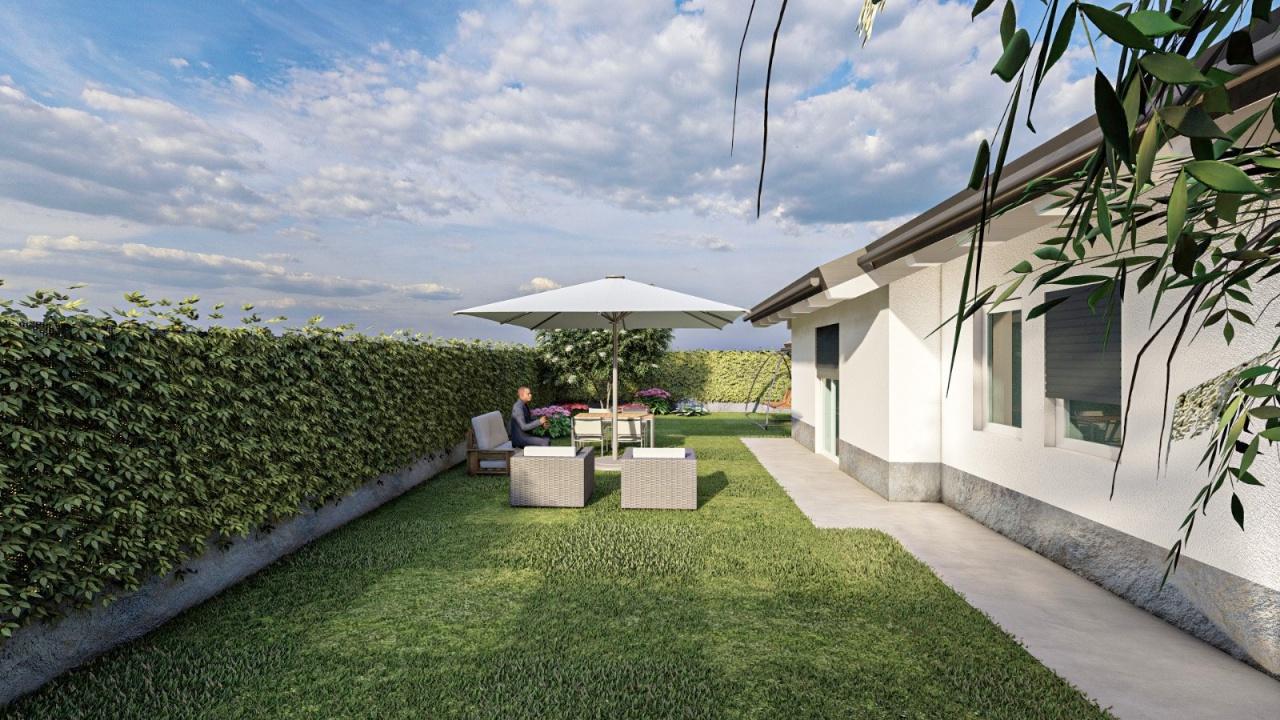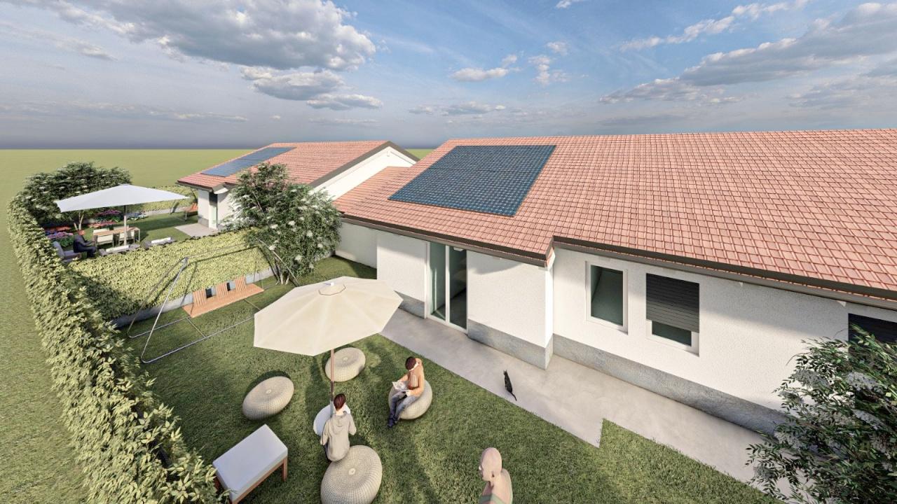 In Chivasso (TO) frazione Castelrosso proponiamo in vendita ville indipendenti di nuova costruzione, sviluppate su unico piano con giardino privato e box auto doppio con basculante motorizzato.