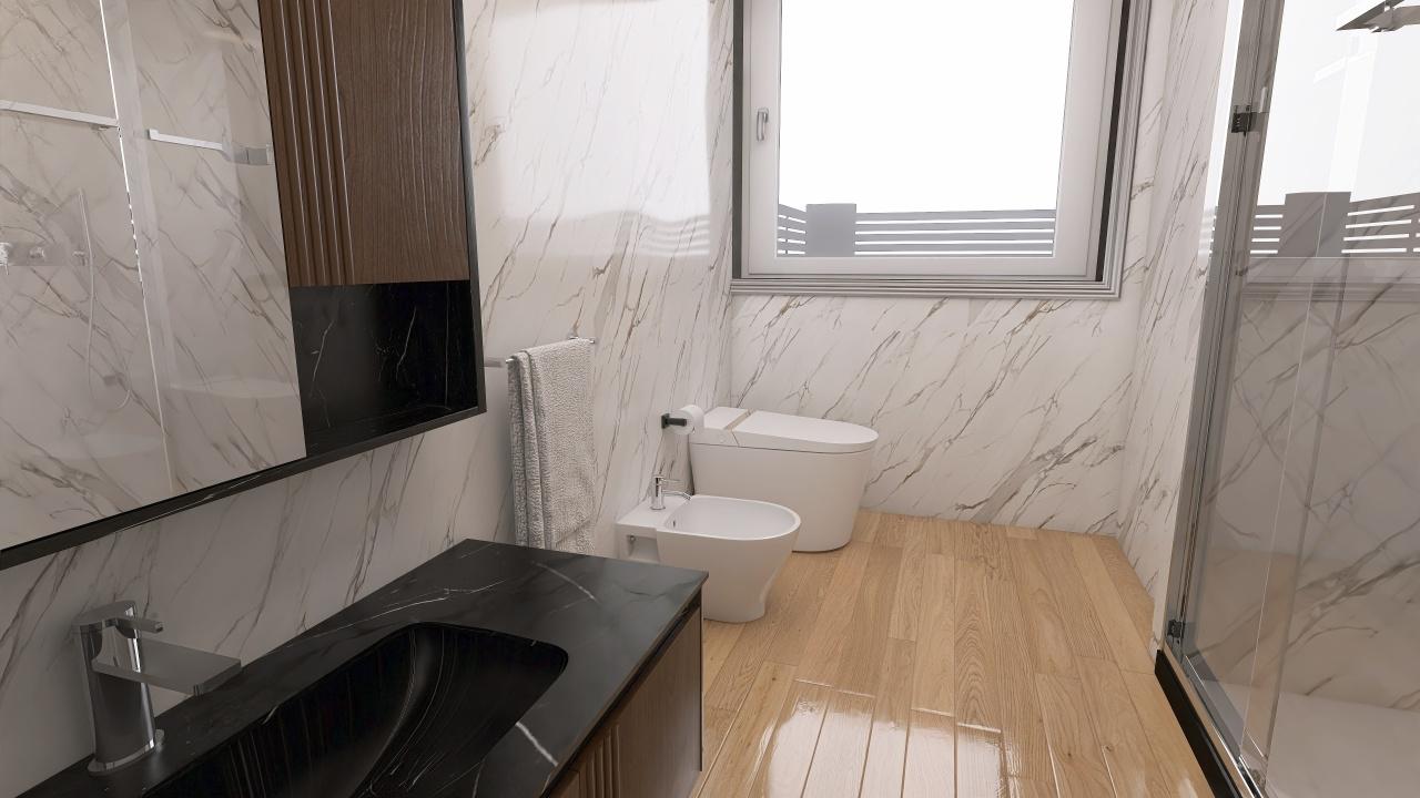 - Secondo bagno completo con doppio lavabo, per un comfort ottimale.