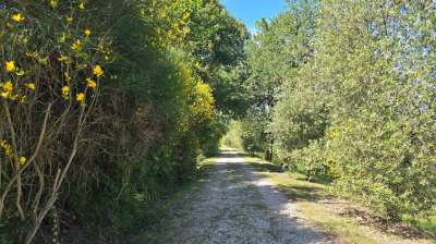 Dal cancello automatico, con colonne in pietra, si apre un lungo viale che conduce al casale padronale ed alla dependance, mentre dal perimetro recintato si aprono vari percorsi naturalistici attraverso il bosco confinante di proprietà.