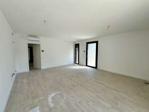 L´accesso alla proprietà, indipendente rispetto al condominio, avviene sul giardino privato, in parte a verde (50 mq circa) in parte pavimentato (35 mq circa), da questo si accede alla zona living, dove troviamo un moderno e luminoso open space cucina/soggiorno, tramite un disimpegno si entra nella zona notte dove abbiamo una camera da letto singola, una camera matrimoniale, un bagno ed una comoda lavanderia che si affaccia su un altro piccolo spazio esterno di servizio. Completano la proprietà 2 posti auto. Termosingolo con pompa di calore, riscaldamento a pavimento ed aria condizionata.