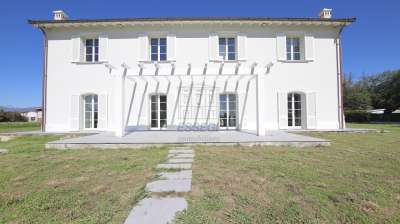 IA04132 VILLA DI NUOVA COSTRUZIONE realizzata ex nuovo con struttura e materiali innovativi.Questa villa unica per le sue caratterstiche è ubicata in zona pianeggiante nel Comune di Capannori è stata appena ultimata .Ha in corso il completamento delle opere esterne ( parco,piscina,viabilità). Per la costruzione sono state utilizzate tecniche innovative per antisismica,insonorizzazione,risparmio energetico che individuano la villa in classe A4. Il fabbricato è stato realizzato con struttura in cemento armato con tamponatura in laterizio. il solaio del piano primo è in latero-cemento, mentre il solaio di copertura è in legno. Gli infissi sono in legno con vetro termico e sono certificati. Il tetto è isolato con pannelli in fibra di legno. L´impianto di climatizzazione è stato realizzato con pompa di calore idronica e caldaia a condensazione ad integrazione. L´impianto è di tipo radiante a pavimento e i fancoil sono idronici. E´ presente la VMC centralizzata. In copertura sono presenti pannelli solari fotovoltaici per una potenza complessiva di kw. 10,40. Sono presenti due batterie di accumulo di 12 kw cadauna di marca Tesla. L´impianto elettrico è di tipo domotico. Le finiture interne ed esterne sono lussuose, modernissime che rendono la villa funzionale e luminosissima . Allarme interno e perimetrale a pressione.