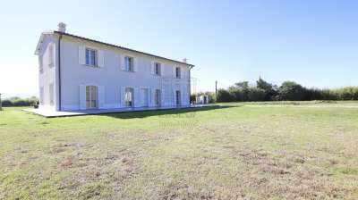 Internamente si apre in grandi spazi quali l´ampio ingresso con scala a vista,una grande cucina abitabile arredata, un salone doppio. La zona notte posta al piano primo ha un grande disimpegno, una camera padronale en suite con bagno doccia e vasca e altre due camere ciascuna con bagno. Il terreno in dotazione è di circa mq.15.000 ed è idoneo a realizzare un magnifico parco. La villa viene venduta arredata con arredi di primissima qualità. Richiesti €.1.800.000