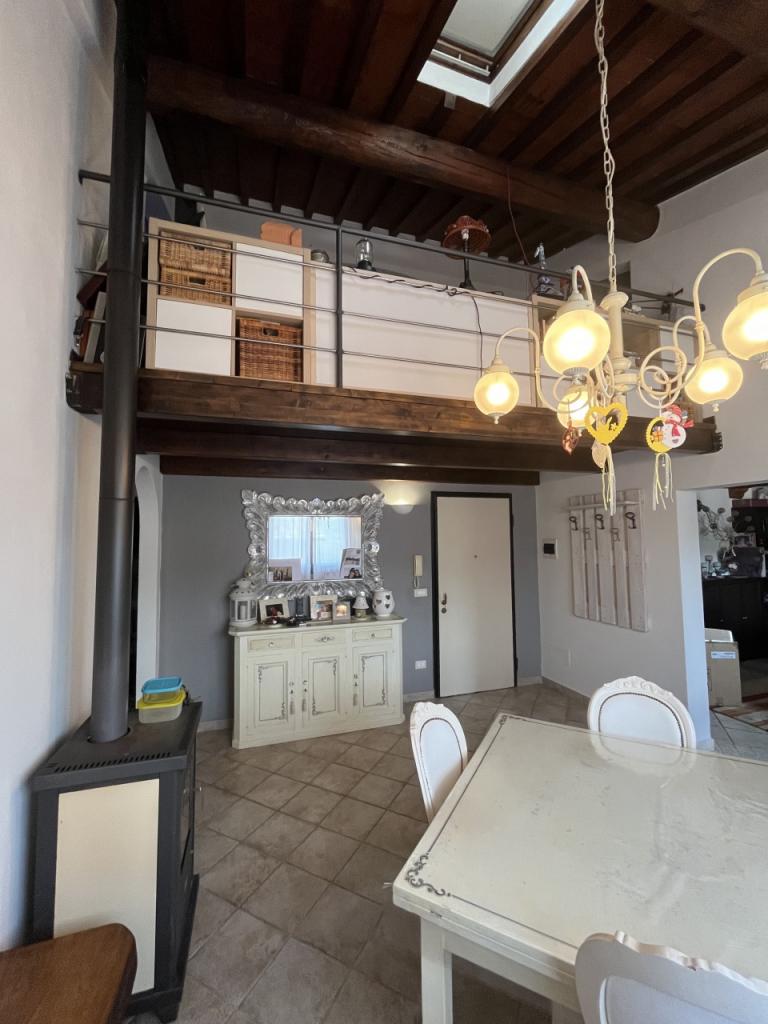 appartamento in piccolo condominio, al piano secondo ed ultimo, finemente ristrutturato in stile rustico toscano, tetto a vista con travi e pianelle in cotto, rifinito in ogni particolare, composto da: soggiorno con camino, sala da pranzo con forno a legna e doppio volume su cui affaccia un soppalco, cucina abitabile, 3 camere di cui 2 in soppalco, studio in soppalco, 2 bagni, stanza lavanderia, 3 posti auto coperti, ampia cantina. L´appartamento è formato da due unità immobiliari con gli impianti già predisposti per un´eventuale divisione. Possibile anche la vendita separata dei due immobili. In attesa di certificazione energetica. Classe Energetica: - - IPE: 0.00kWh/mq anno