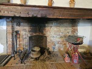 PAVIMENTI IN COTTO, TRAVI A VISTA, CAMINO.
