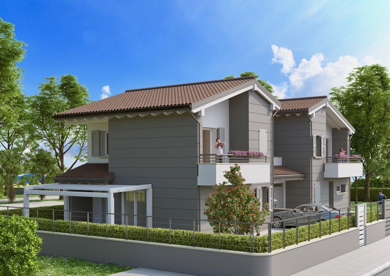 Baricella Loc. San Gabriele - NUOVE VILLE BIFAMILIARI - A pochi passi dal centro del paese ma con splendida vista sulle campagne, in zona residenziale e circondata dal verde pubblico, proponiamo Villetta Bifamiliare costruita con le più moderne tecnoligie, composte da ingresso su ampia sala con cucina a vista, comodo portico accessibile dalla cucina, 3 camere, 2 bagni, garage ampio e giardino privato. Progettate per ottenere un altissimo risparmio energetico (Impianto fotovoltaico e solare termico, riscaldamento a pavimento...), antisismica con la possibilità di personalizzare gli spazi interni in base alle specifiche esigenze del cliente. Finiture di pregio da € 335.000 rif 1607-V