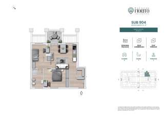 L´appartamento SUB 904 si trova al quinto piano della scala C di Palazzo Fiorito. Si tratta di un trilocale con una superficie commerciale di 74 m², composto da due camere da letto, un bagno e una luminosa zona giorno e una stanza ripostiglio/lavanderia. L´appartamento vanta terrazza/loggia abitabile coperta, perfette per godersi momenti di relax all´aperto.